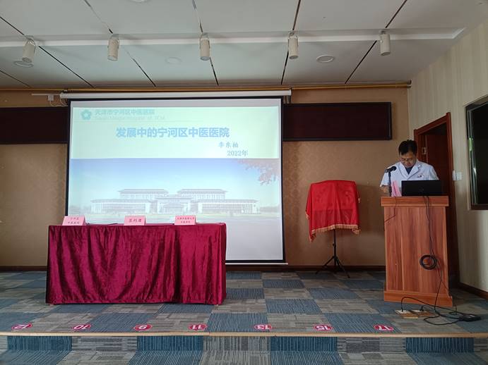 宁河区中医医院院长李东柏介绍医院在科室建设、发展规划等方面的工作情况