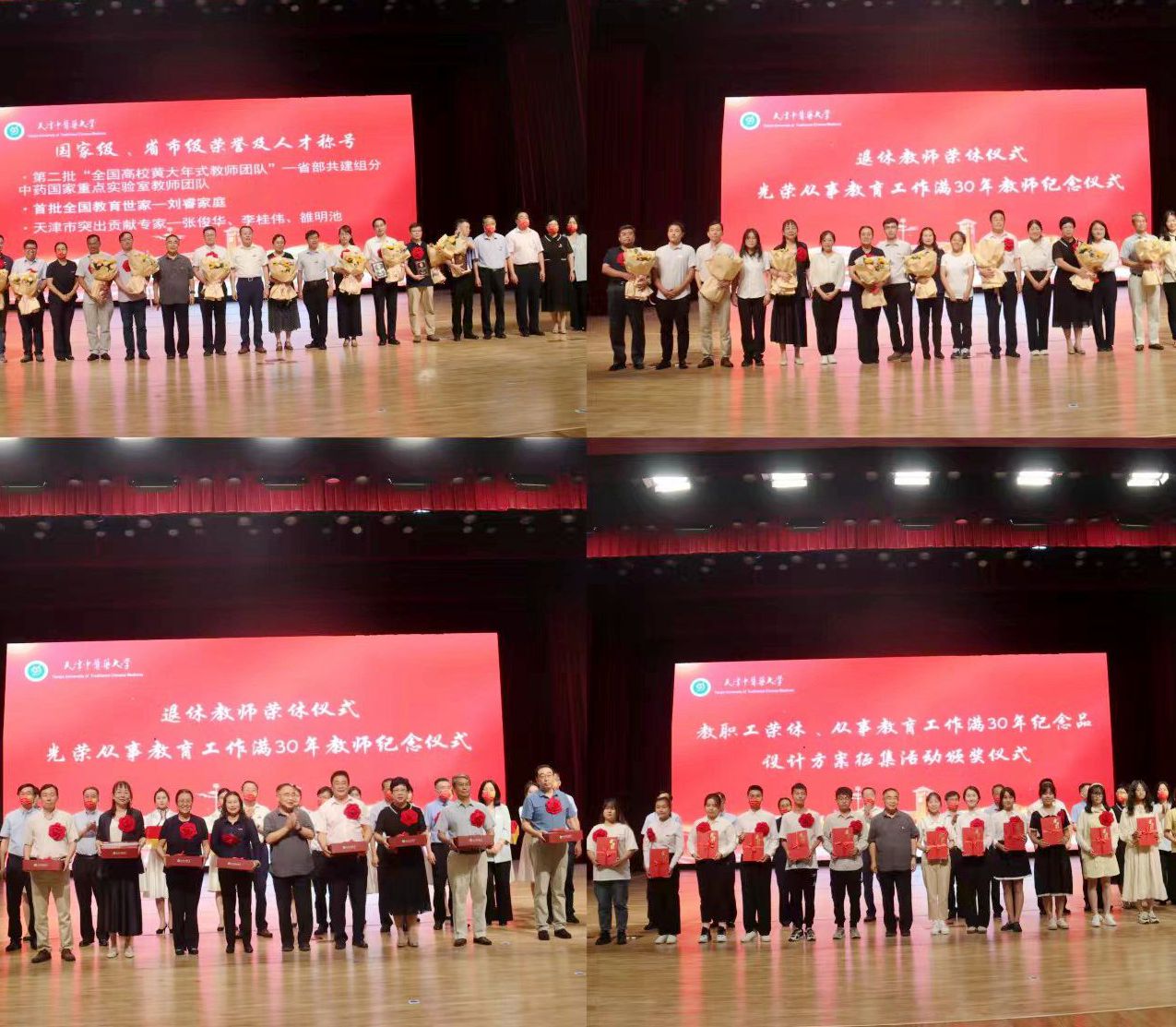 9月9日下午,天津中医药大学举行第38个教师节庆祝大会。国医大师、名誉校长张伯礼院士以及全体校领导和一、二附院领导出席,光荣退休教师、30年教龄教师、获奖教师与集体代表,课程思政筑梦班学员、新入职教师,以及处级领导干部、党内外人才、老师和学生代表参加大会。大会由校党委副书记刘怡蔓主持。