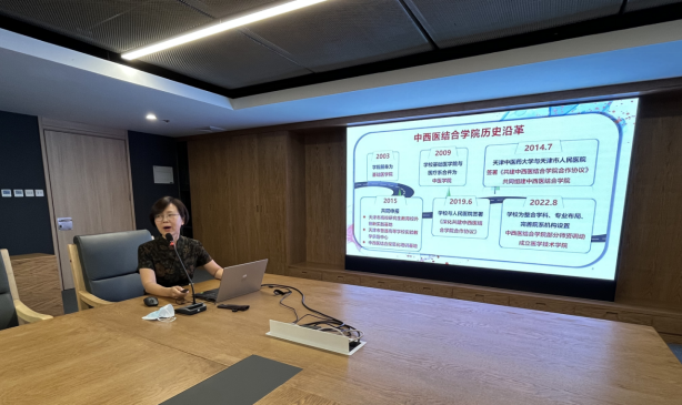 边育红院长就学院历史沿革、合作成果、学生培养与未来专业规划进行成果汇报与交流,指出,在天津市人民医院的关怀支持下,教学、科研、本科生与研究生工作的质量有了明显提升,希望在今后双方可以不断加强合作交流,真正实现优势互补、资源共享、合作双赢。