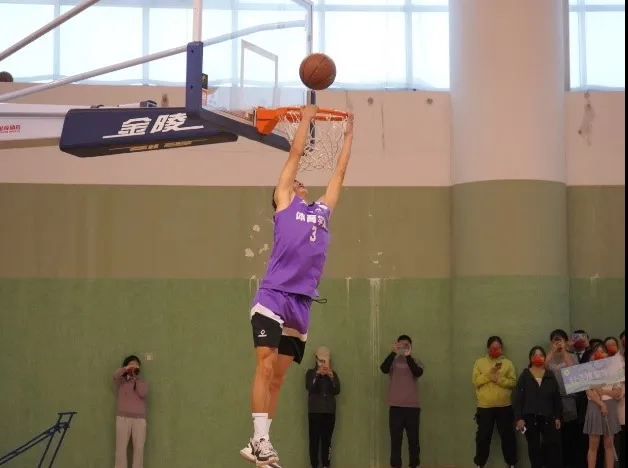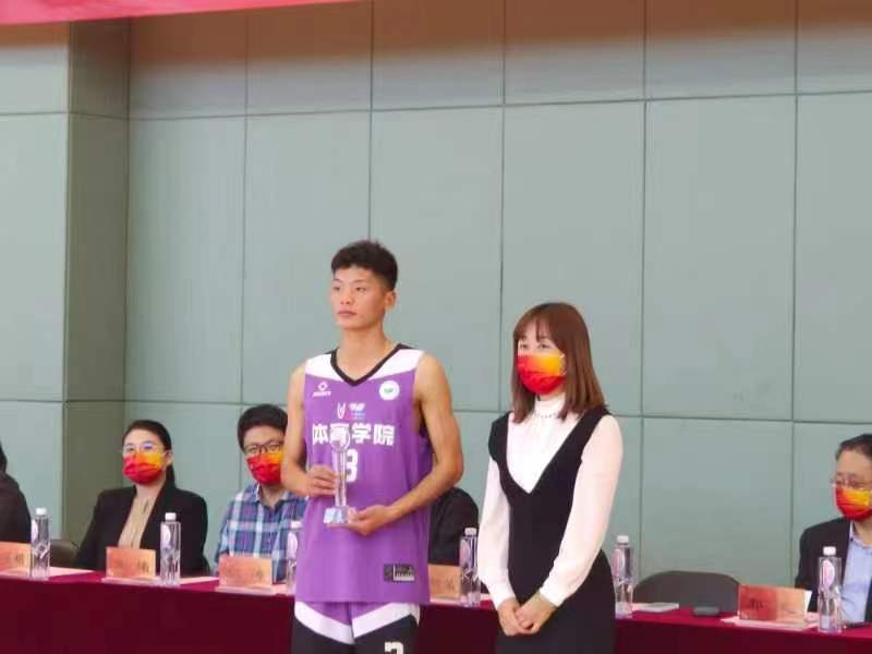 伴随着阵阵掌声,由校团委书记张晶为扣篮大赛获胜者吕佳乐颁奖。