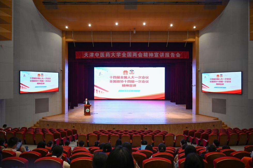 同时,邱峰副校长还为同学们详细解读了《中医药振兴发展重大工程实施方案》、关于加强新时代中医药人才工作相关政策和天津市“十项行动”。介绍了近几年来学校在中医药人才培养、师资队伍建设、科技创新成效、科技成果转化等方面的基本情况和取得成绩。他勉励同学们要学习贯彻落实全国两会精神,要珍惜现有宝贵资源,认真学习中医药专业知识和技能,做一名中医药领域优秀的从业者和文化传承人,为中医药的传承、创新与发展尽一份力量!