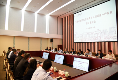 南京中医药大学党委书记乔学斌、上海中医药大学党委书记曹锡康、浙江中医药大学党委书记黄文秀对刘革生书记一行的到访表示热烈欢迎,并介绍了学校近年来的发展历程和取得的成绩,希望与天津中医药大学进一步加强合作、深化交流,抢抓机遇,为传承发展中医药事业作出更大贡献。