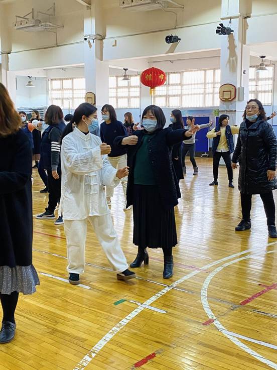 活动中党员博硕士服务团成员分别对中华传统体育项目概况、八段锦名称的由来、特点及功效等方面进行了介绍。随后进行了分解动作讲解、示范和细节指导,待老师们掌握了动作要领后,在音乐口令和同学示范下,老师们共同完成了一整套八段锦动作。