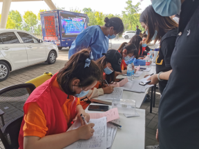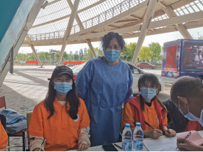 值得一提的是,在签署院地共建合作协议及开展膳食健康指导志愿活动的同时,不远处的团泊体育中心网球馆中,湖岸栖庭社区新冠疫苗接种工作也正在如火如荼地进行,而在现场的工作人员中活跃着健康科学与工程学院志愿者们的身影,他们身着统一制式服装,与社区的工作者们一道,热情地为前来接种新冠疫苗的居民朋友们提供细致周到的服务。