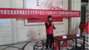 在双方领导简短地致辞后,孟繁洁书记与华康街道办事处副主任高卫东同志共同签署了《华康街道湖岸栖庭社区与天津中医药大学健康科学与工程学院共建合作协议》并共同为“思政育人共建基地”揭牌。