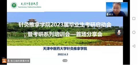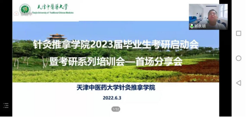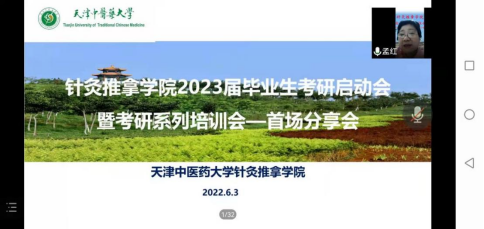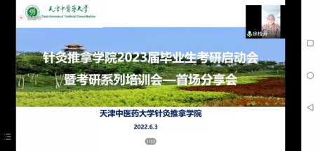 为营造浓厚的学习氛围,树立正确的就业观,帮助同学把握考研政策,科学掌握备考方法,合理调适备考情绪,2022年6月3日,针灸推拿学院召开2023届毕业生考研启动会,天津中医药大学副校长郭义教授,针灸推拿学院党委书记孟红,副院长郭永明,学院党委副书记胡涛,研究员徐枝芳等教师,全体辅导员以及2023届毕业生共计300余人参会。