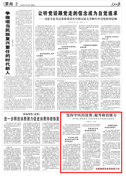 “重症、危重症患者救治,首先要强调的是多学科合作。”张伯礼认为,重症医学科、呼吸科、营养支持、护理、中医等学科要发挥各自优势、集体发力,中西医结合、中西药并用,从而控制病情、逆转病情、降低病亡率。