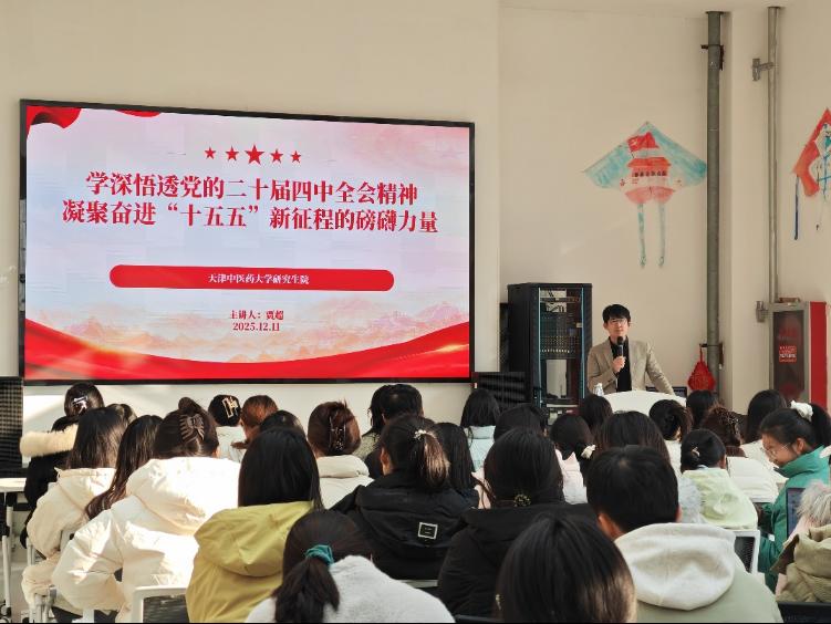 为深入推进党的二十届四中全会精神学习,引导青年学子精准把握全会核心要义、勇担时代使命。2025年12月11日下午,研究生院团委邀请天津职业大学马克思主义学院贾超副教授为团员青年开展党的二十届四中全会精神专题讲座。
